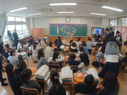 歓迎の出し物では、新2年生が呼びかけや、できるようになったことの実演、合奏などを披露してくれました。