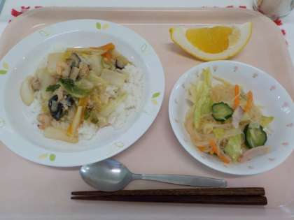 本日の給食は、八宝菜丼・春雨サラダ・河内晩柑・牛乳です。