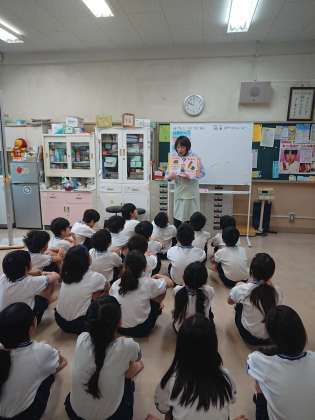 上の写真は、児童が健康診断、検査を受けている様子です。