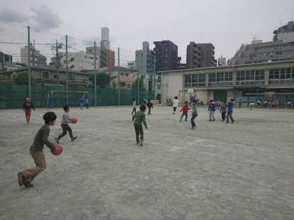 校庭で遊ぶ子どもたちを見ると、ボール遊びをしている姿が多く見られました。