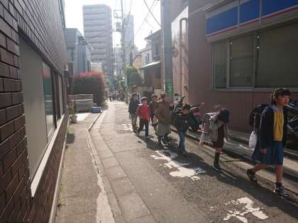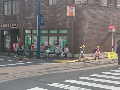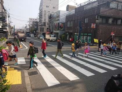 上の写真は、池尻郵便局前の横断歩道を渡る今朝の子どもたちの様子です。
