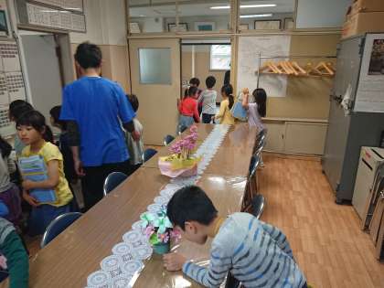 4月24日(水)の午前中、1年生と2年生が合同で、学校探検をしました。