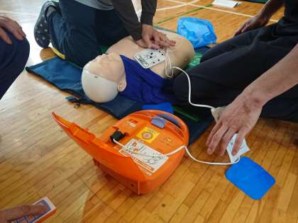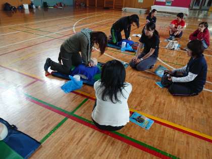 実技は、胸骨圧迫、心肺蘇生法、AEDの使い方でこれまた実技テストあり。なかなかハードな講習会でした。