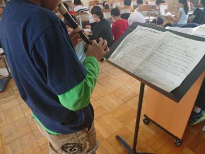 リコーダーの演奏を一人ずつ行っているところから、実技テストだと分かりました。