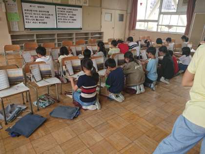テストの順番がきていない子たちは、演奏する子が緊張しないように、全員後ろを向いて、プリント課題に取り組んでいました。