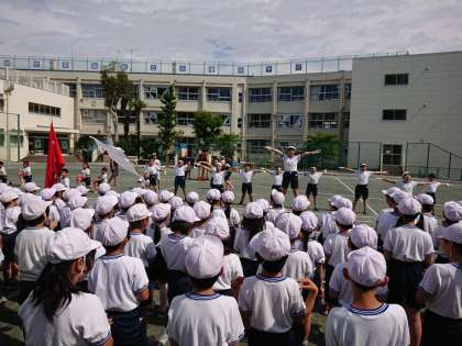 今日は朝から運動会の全校練習が行われています。