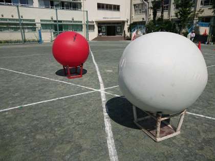 はさみ、このあとには全校競技「大玉送り」の練習を行います。