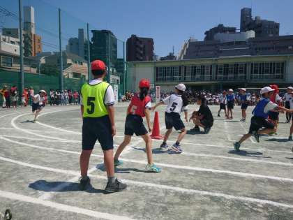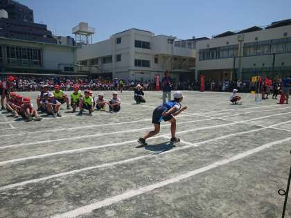 13時23分、上学年リレーが終わりました。次は最後の種目、全員での大玉送りです。