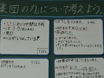 いじめの根絶はなかなか困難ではありますが、日頃の授業でも、それに近づける取り組みは続けています。
