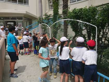 校庭の使い勝手を考え、主事さんたちが設置場所を変更し、運動の妨げにならないように工夫してくれました。
