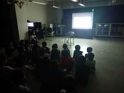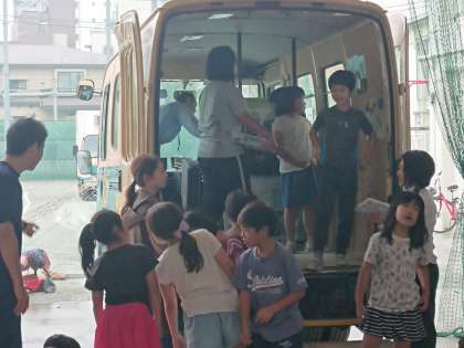 校庭で行うプログラムは、途中から急に雨が降り、急遽場所を変えるハプニングもありました。