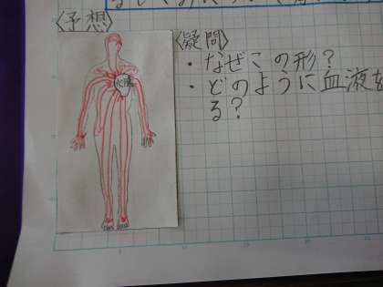 この日は、血液が体をどのように巡っているかを調べるための前段階の活動です。
