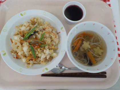 本日の給食は、五目ずし・七夕汁・七夕ゼリー・牛乳です。