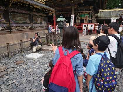 食後は再びバスに乗り、午後は日光東照宮の見学でした。クラスごとにガイドさんが付き、詳しく解説してもらいながら東照宮の見学をさせてもらいました。