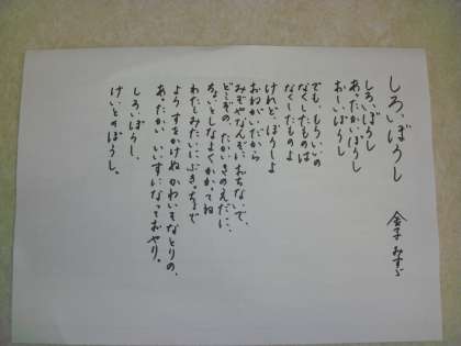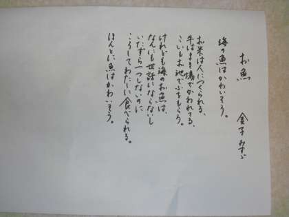 金子みすゞのたくさんの詩の中から、好きな詩を一編ずつ選び、紹介し合いました。そのなか印象深い詩だという声が出た詩が三編ありました。5年生の最後の単元です。