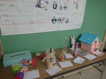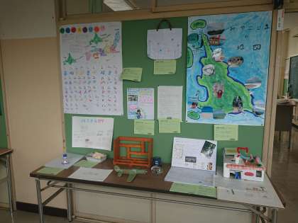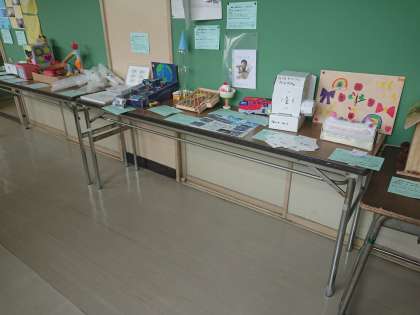 9月4日(水)、新学期の始めに子どもたちが家から持ってきた夏休みの作品が、各教室と教室前の廊下に展示する作業が整いました。