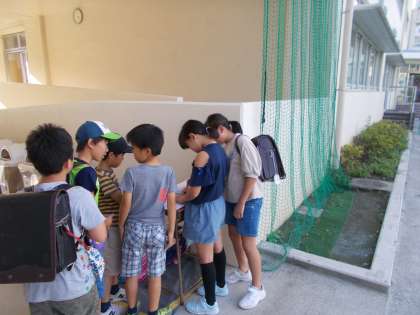 秋晴れの下、青空BOPを行っています。