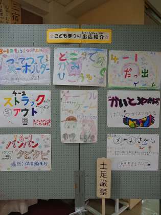 明日のこどもまつりは9:30からお昼までやっています。保護者の皆様は、参加はできませんが、参観は自由ですので、どうぞ見に来てください。