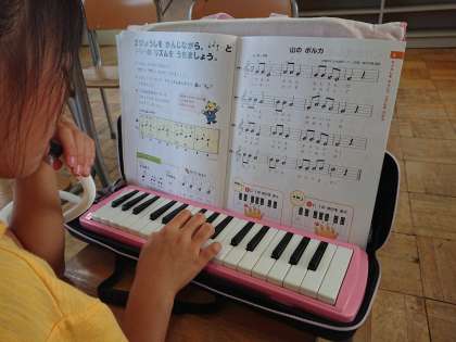 テストが終わったあと、みんなでけんばんハーモニカで同じ曲を演奏していました。