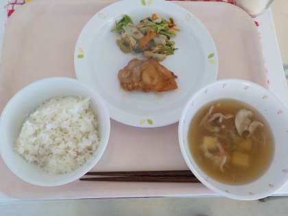 本日の給食は、麦ごはん・鶏の照り焼き・野菜のおひたし・豆腐汁・牛乳です。