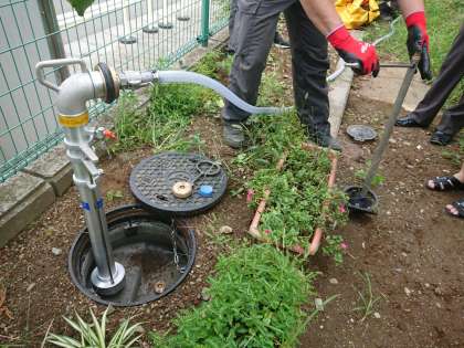 使い方としては、町中にある消火栓の場合に似ています。マンホールのふたを開け、中にある給水バルブに器具を取り付けてから給水弁を開くというものです。
