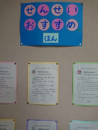 現在三宿小は秋の読書月間です。職員室前の廊下には、先生たちのおすすめ本コーナーも作られています。ご家庭でも親子で読書を楽しむ時間がとれるといいですね。