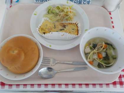 本日の給食は、ミルクパン・切り干し大根のオムレツ・もやしカレードレッシング・スパゲティスープ・牛乳です。
