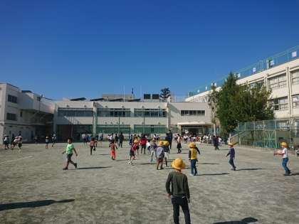 よく見ると、教員や他の職員も外に出て、子どもたちと一緒に遊んでいます。(一部の年配者を除く)