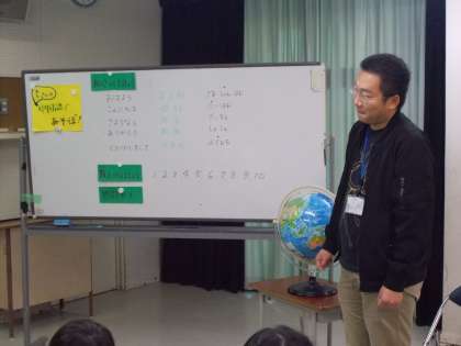挨拶を中国語で言ったり、李さんの小学校時代の