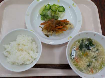 本日の給食は、ごはん・魚の南蛮揚げ・野菜のひとしお・かきたま汁・牛乳です。