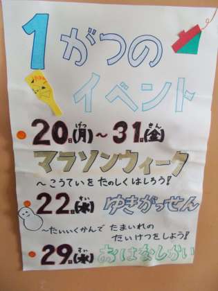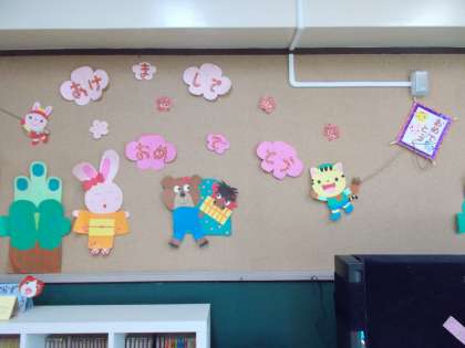 新BOP室の背面黒板は凧揚げや獅子舞などの