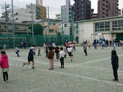 このような寒い日でも、中休みにはみんな校庭に出て元気に外遊びです。