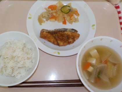 本日の給食は、麦ごはん・魚の南蛮揚げ・シャキシャキ野菜・けんちん汁・牛乳です。