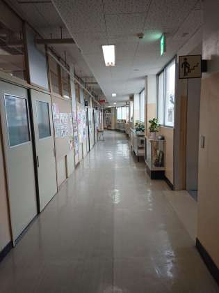 学校の廊下は冷え込んでいます