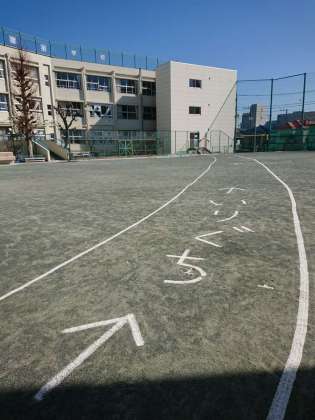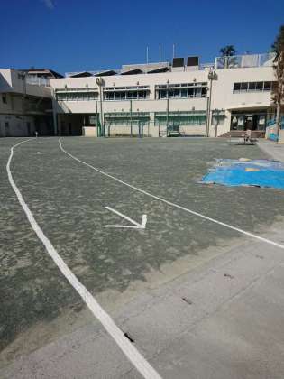正門を入った児童は、そのまま校庭をまっすぐに進み、東側のトイレ横の入口から下履きのまま校舎に入ります。