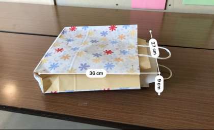 1年生の配布物はこの様に一つの紙袋に全て入っています。少し重いので紙袋の底が破れる可能性があります。丈夫な手提げ袋をお持ちください。