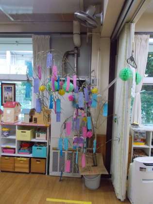 今日は七夕。飾り付けが完了し、笹を提供してくださった
