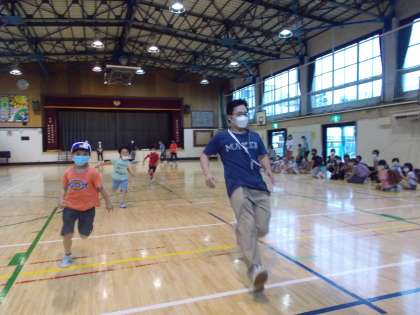 6メートル後方から大人も真剣に走りました。
