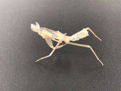 お家で服を脱ぎ散らかすと叱られてしまいますが、これは見事なカマキリの抜け殻です。