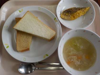本日の給食は、バターマーマレードサンド・魚のカレー揚げ・野菜スープレンズ豆入り・牛乳です。