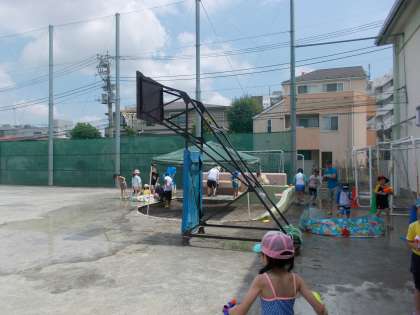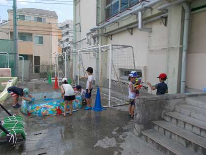 夏休み最終日、水遊びを行いました。