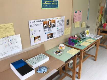 夏休み作品展がはじまりました。みんなどうやって題材を決めたのでしょうか、ユニークな作品が並んでいます。