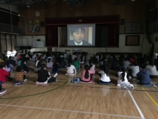 1〜4年生・わかば学級の児童が、世田谷警察署少年係のスクールサポーターの方から連れ去り防止・万引き防止のお話をうかがいました。
