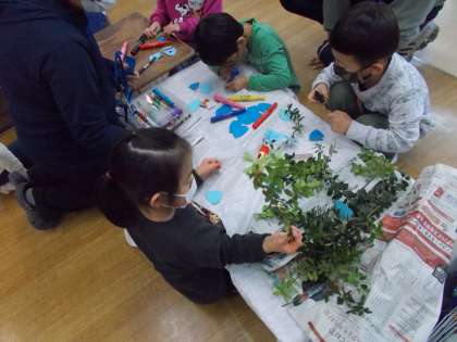 豆まきは大きな声を出せないので、心の声で行いました。