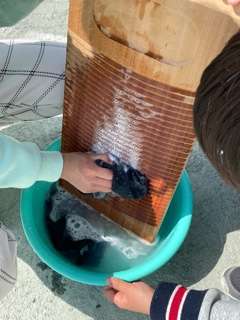 昔の人は、どのように洗濯していたのか。今日はその体験をしました。