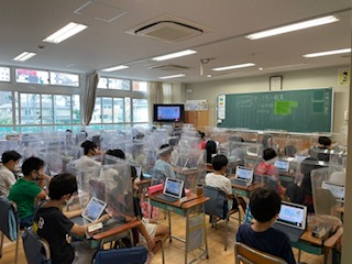 今日は家庭科室から各教室へのZoom配信で実施しました。