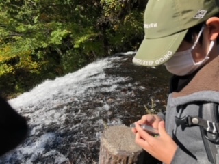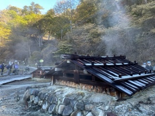 湯元源泉に立ち寄り、湯滝を見学したところです。