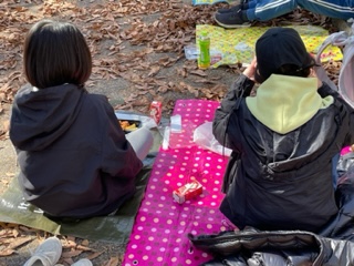 お昼ごはんです。大自然の中で食べるお弁当はサイコーです。