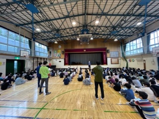 地震後火災発生の想定で、まだ登校していない児童の確認までを行いました。