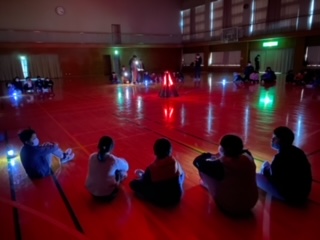 屋内のキャンプファイヤーも幻想的でいいものです。